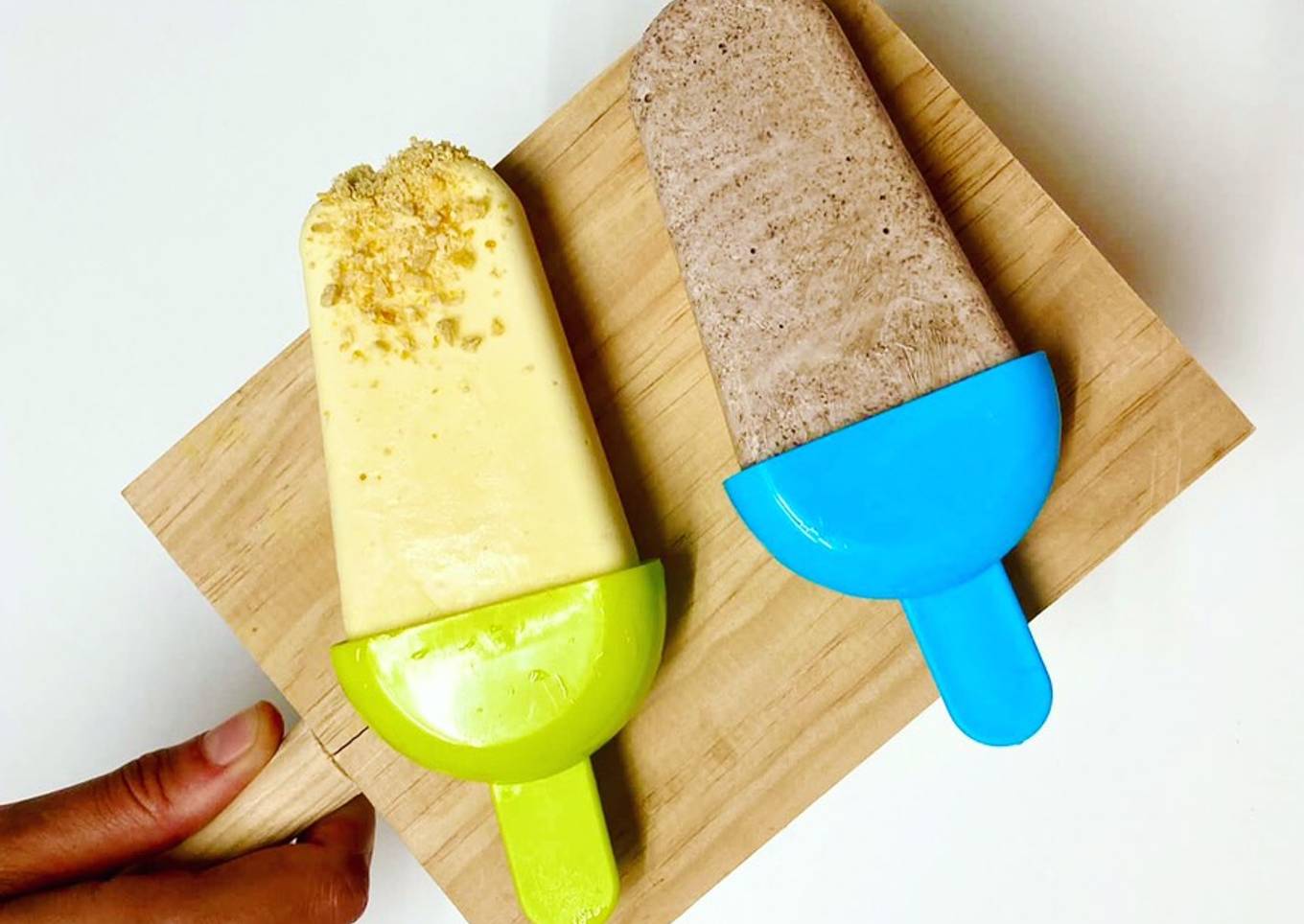🔸 Cuando el helado esté listo, decorar con mango crujiente - Para el polo de chocolate 🍫: