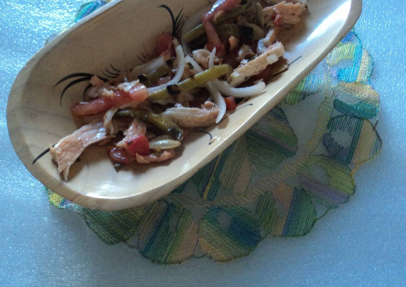 - 4 milanesas o bistec de pollo asadas y partidas en juliana