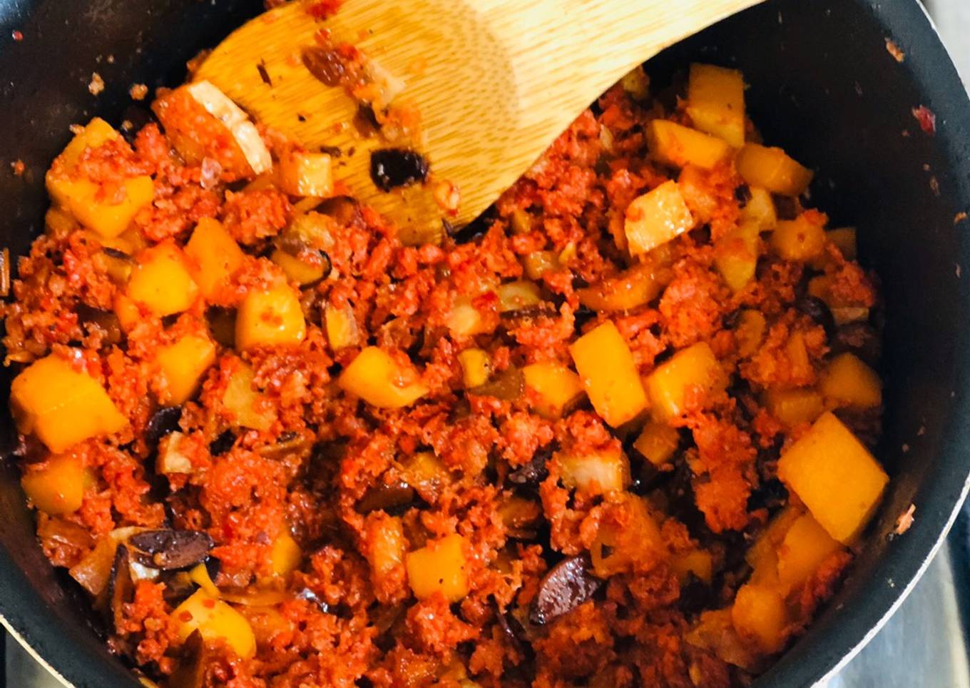 - Deja que el chorizo dore, revolviendo constantemente a fuego medio (aproximadamente 10 minutos) y listo. Guten Appetit!