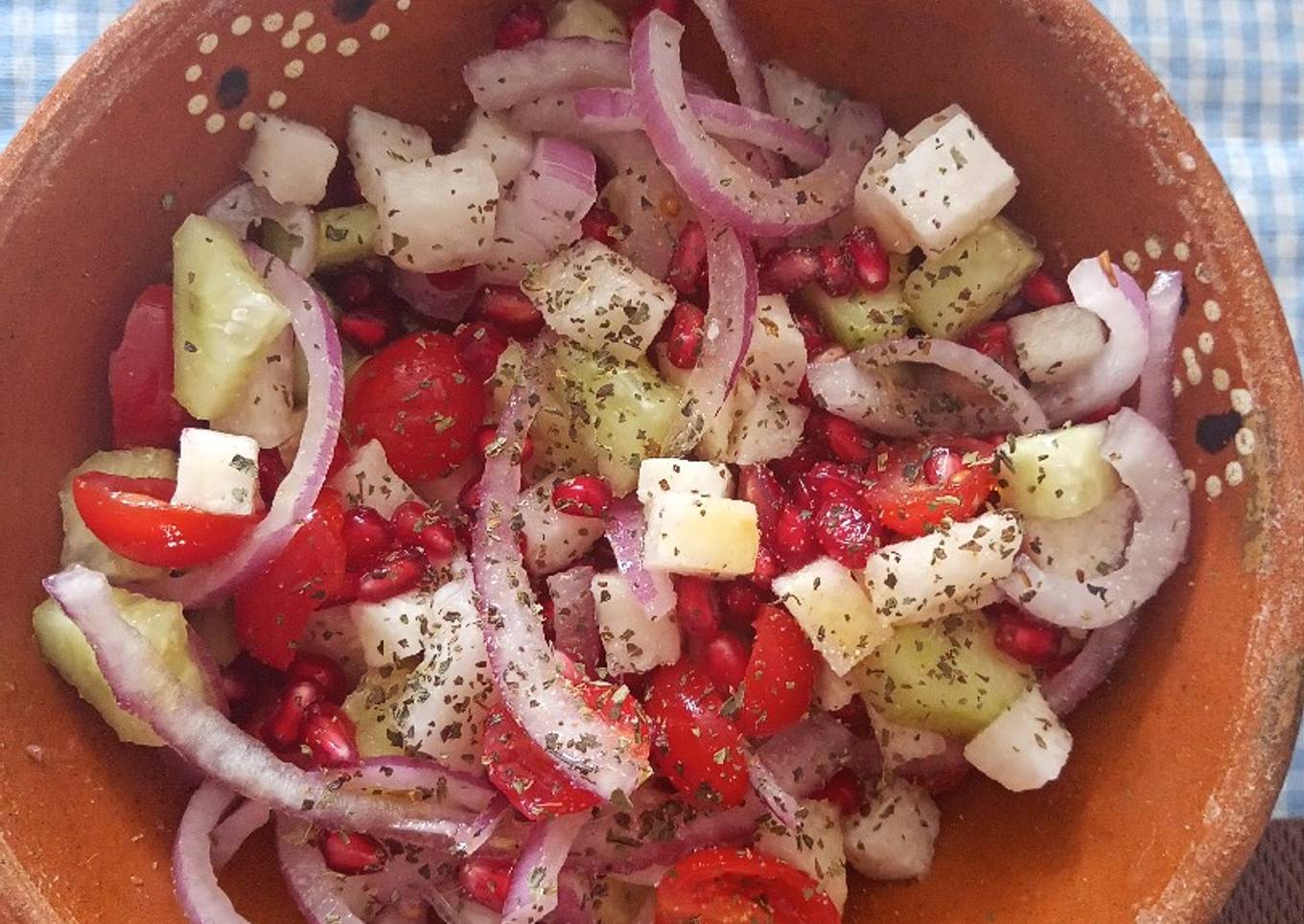Hey everyone, hope you are having an amazing day today. Today, we're going to make a special dish, Ensalada de pepino y granada 🥙. It is one of my favorites. For mine, I am going to make it a little bit unique. This will be really delicious.