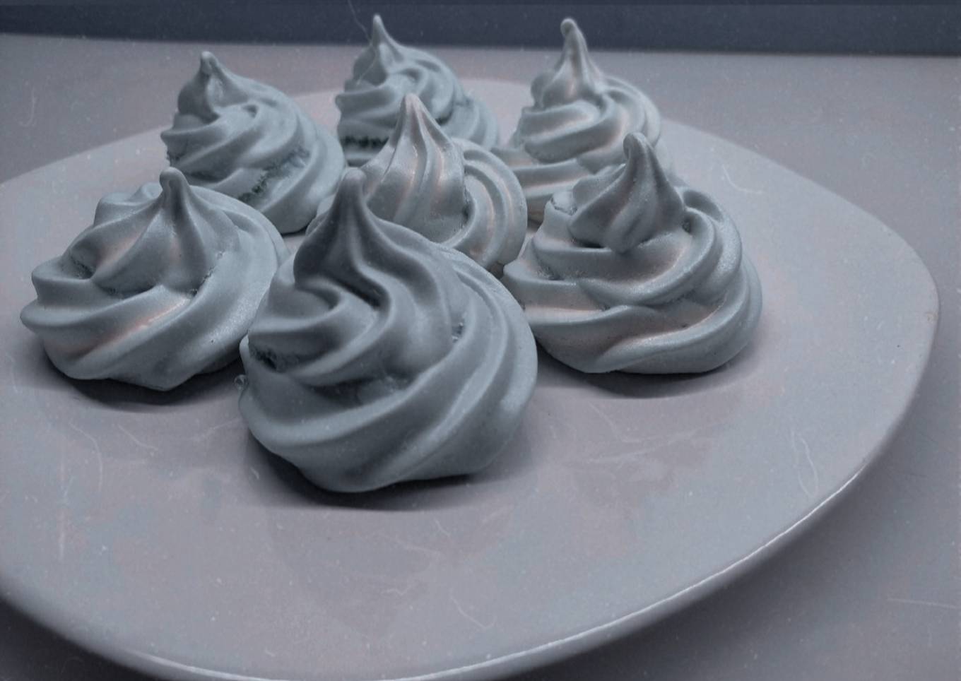 - Llevar a hornear a 150 °C por 40 min, posteriormente bajar la temperatura a 130 - 120 °C. Verificar que la cocción sea completa y que no se oscurezca el merengue.