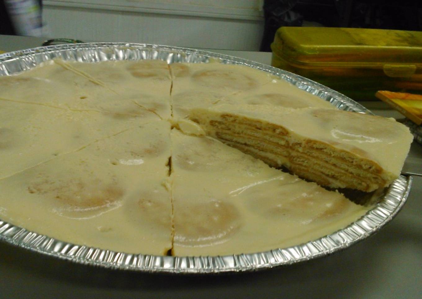- Coloca otra capa de galletas y luego a crema de limón. Y así sucesivamente hasta terminarte la crema y las galletas.