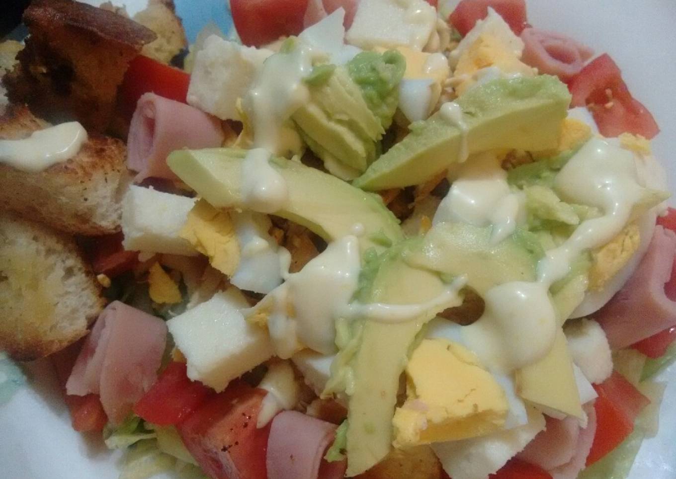 - Agregar el queso, huevo y aguacate si se desea. Acompañar con aderezo ranch, César, mil islas, limón, o lo que sea de su preferencia. Y por su puesto crutones.!