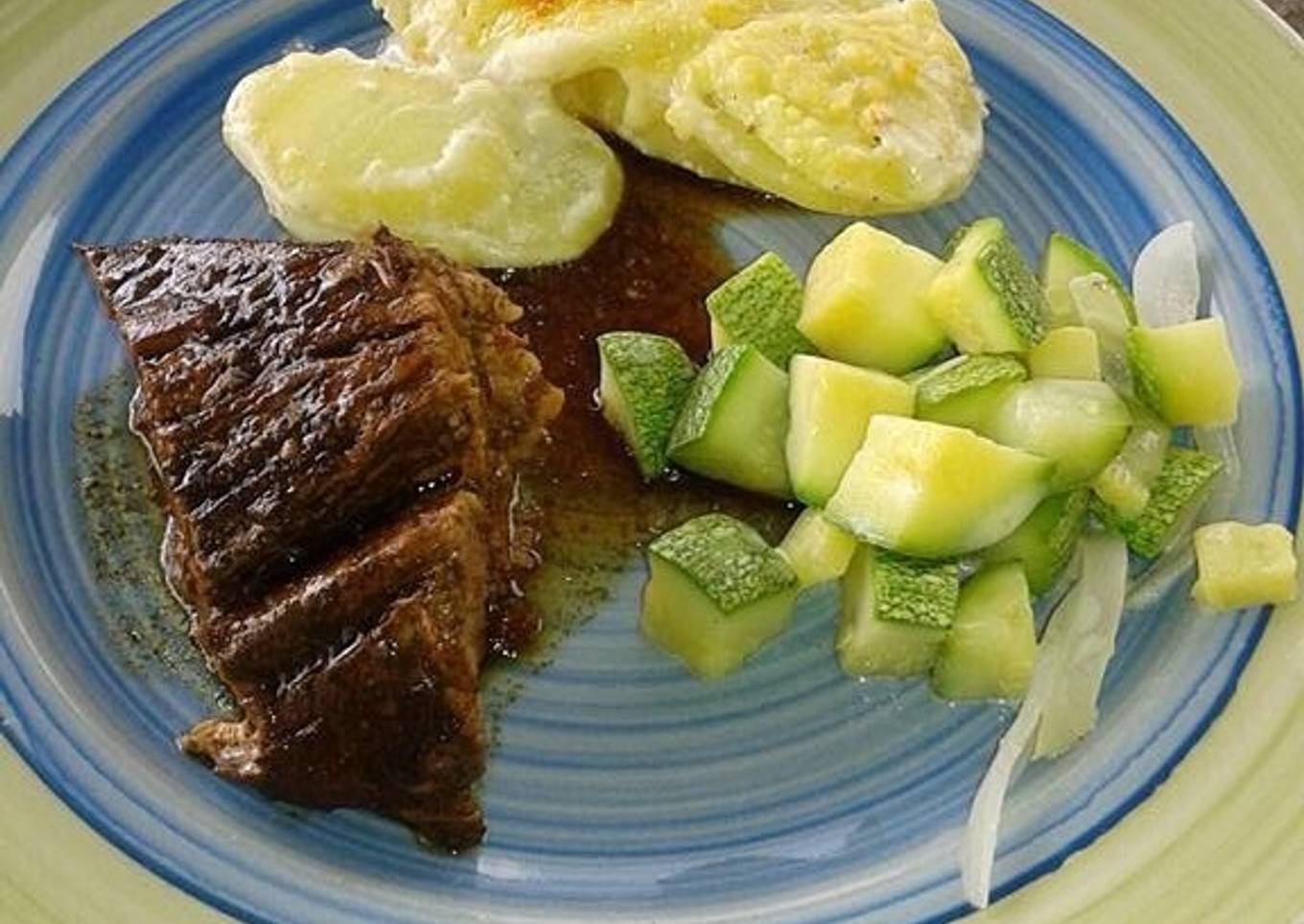 - Meter al horno bajar la temperatura a 165 grados aproximadamente por 40 minutos (recomiendo 3/4 de término de cocción para la carne) pero puede ser al gusto. Acompañar con papas al gratín y calabazas guisadas. A disfrutar!