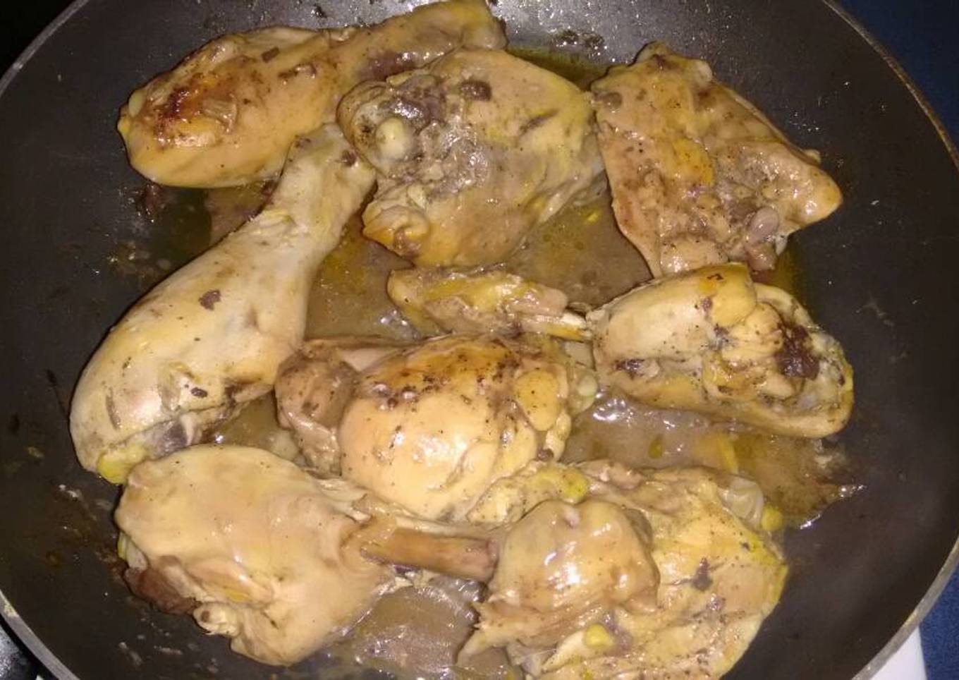 - Ve agregando poco a poco el vino, permitiendo que el pollo se cueza.