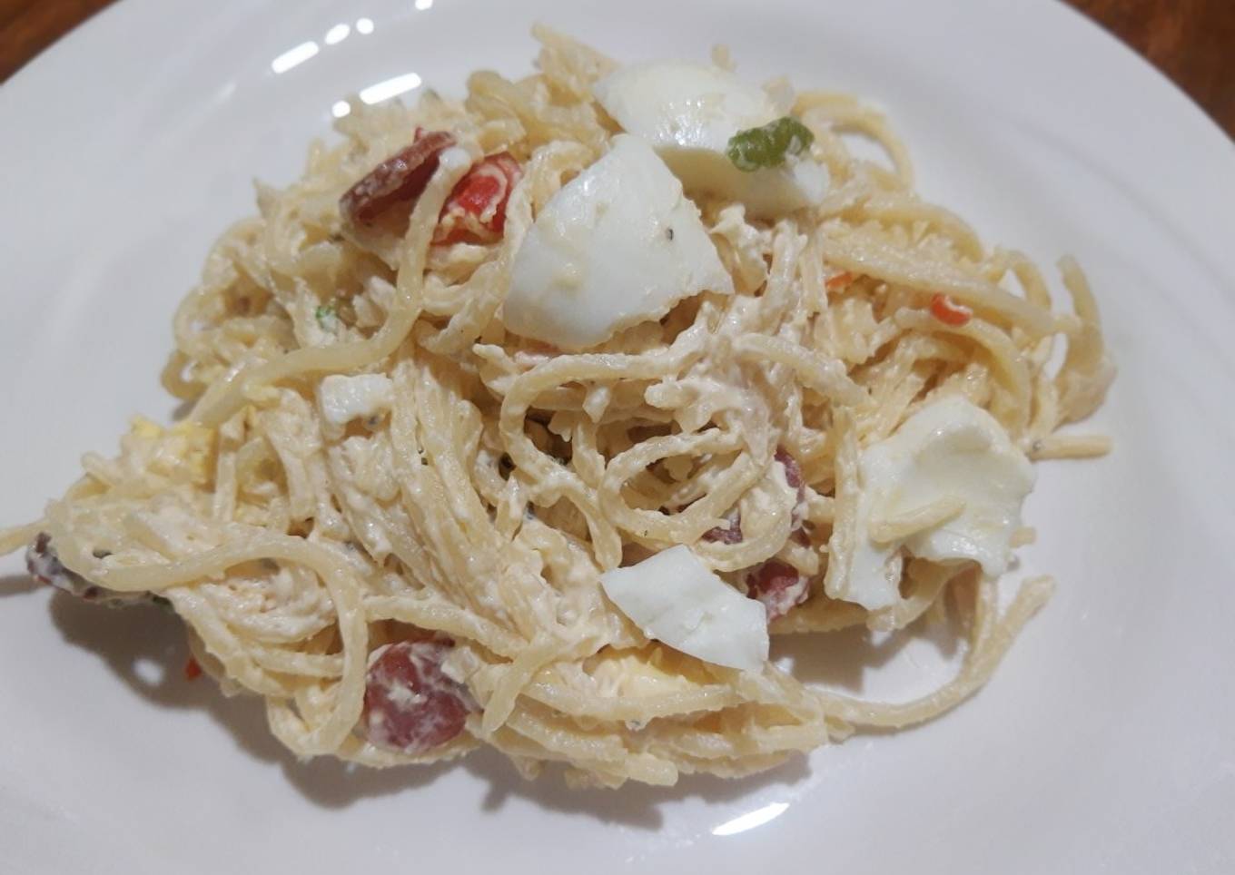 Steps to make to make Espaguetis con salsa blanca, huevos y pepperoni